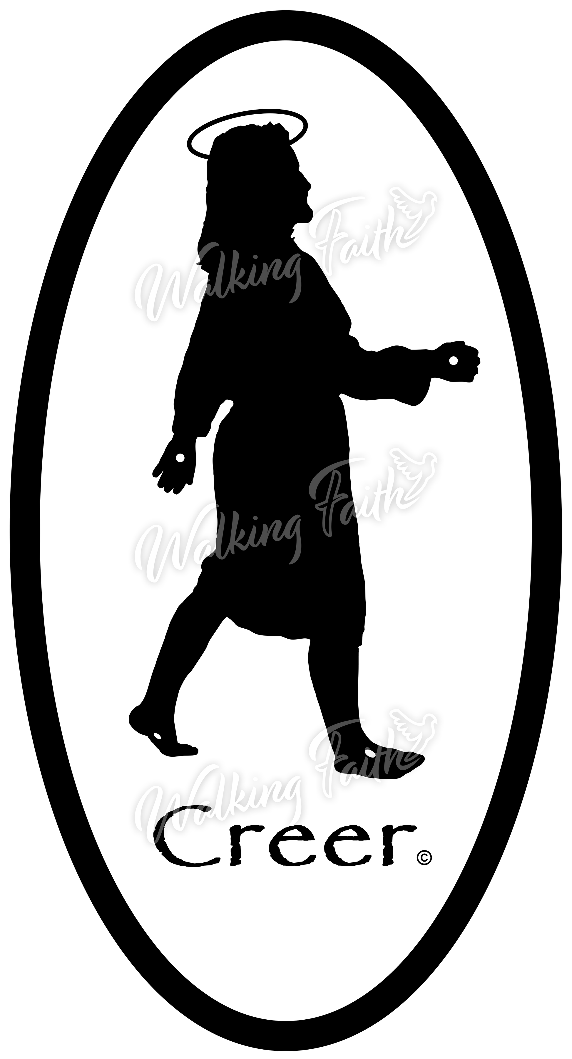 This oval sticker of Jesus ‘Creer’ (Spanish for Believe) shares the true message of our savior, Jesus Christ, who died for our sins and was raised three days later. An adaptation of the Bigfoot folklore, our rendition of Jesus shows Him proudly walking three days after He was risen from the grave, with a halo over his head and subtle piercing marks on his hands and feet.